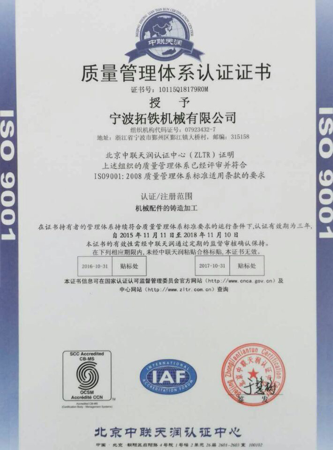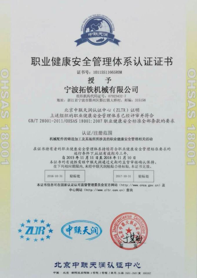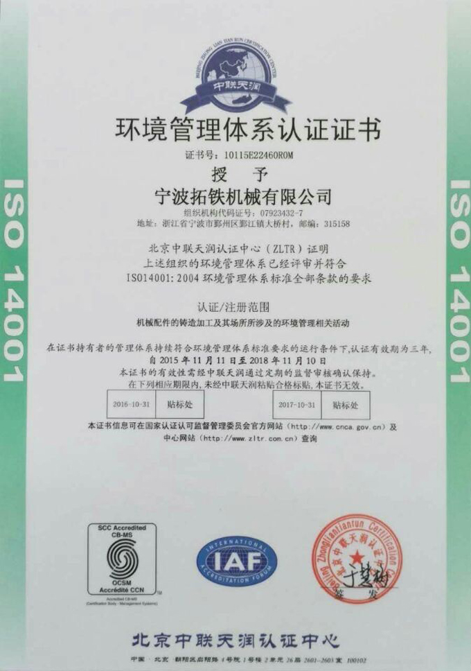 2015年11月,星空(中国)机械获得国家ISO9001质量管理体系认证,ISO14001环境管理体系认证和OHSAS18001职业健康安全管理体系认证。